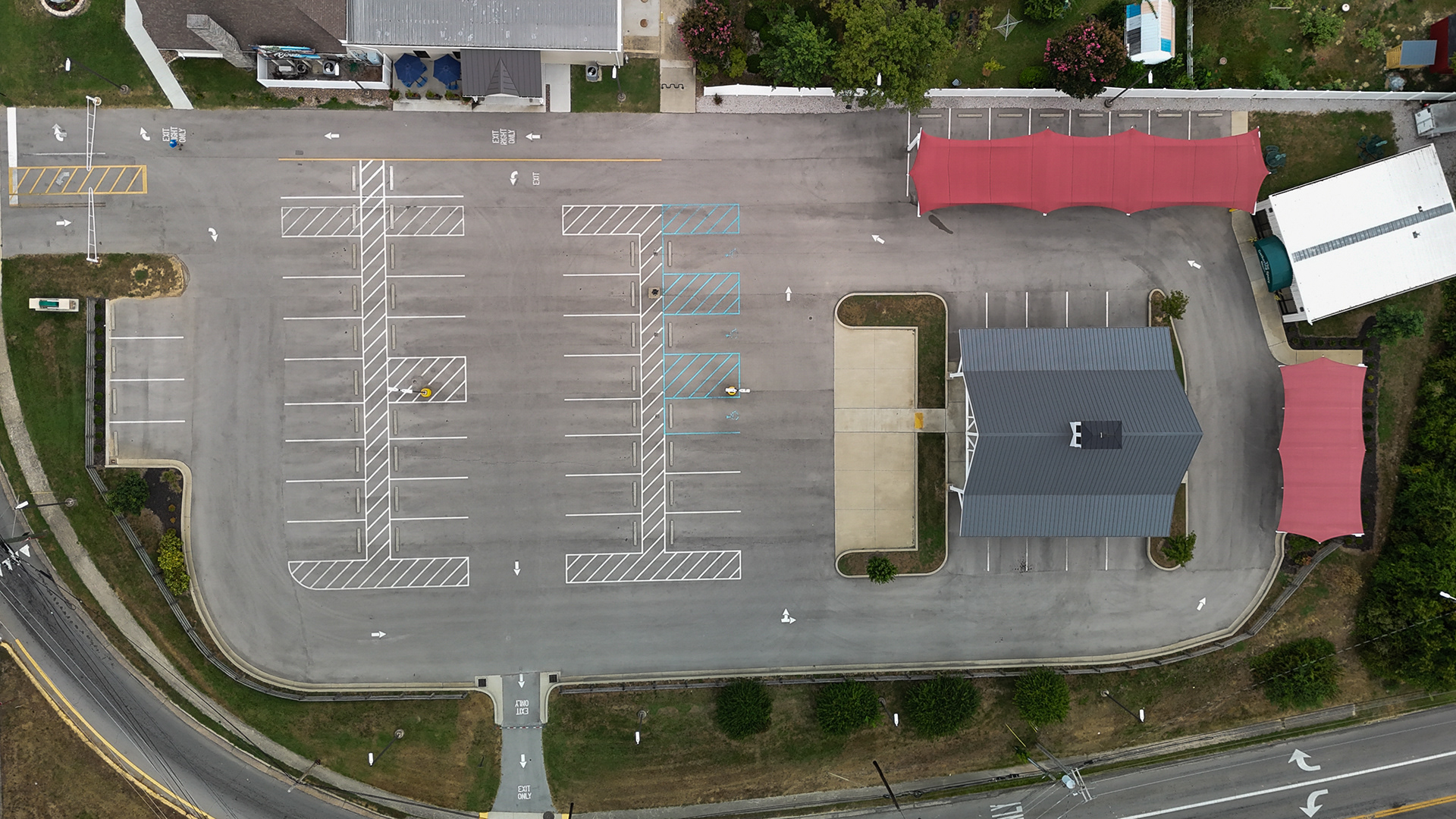 Pavilion Parking lot is the Best parking lot for the Pinnacle Room with unlimited parking. Guest should enter through the side of the building. This lot includes 55 Parking Spots. Additional parking is located on the other side of the building.